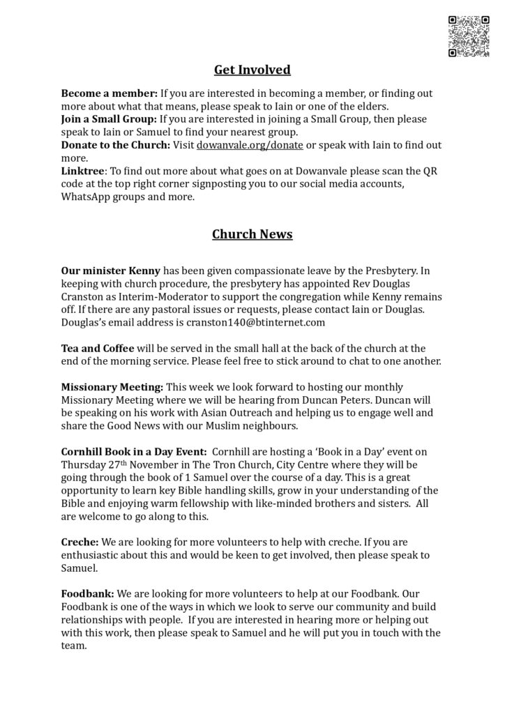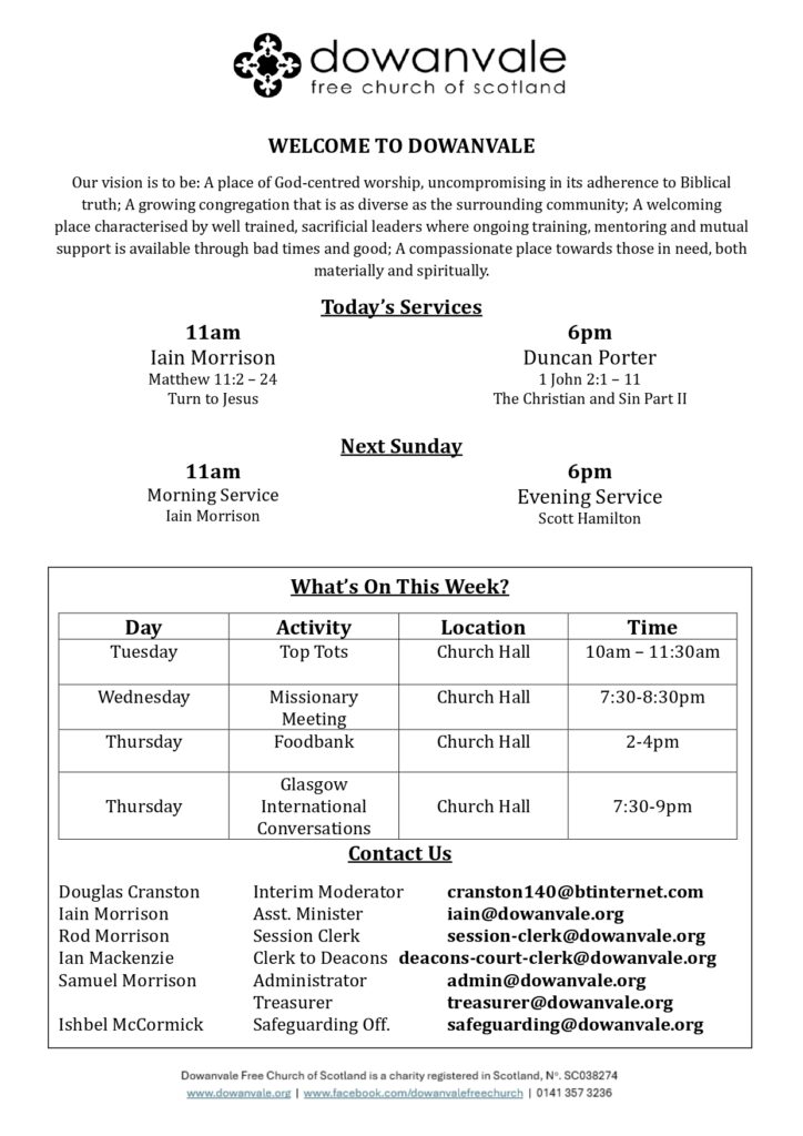 Dowanvale Free Church of Scotland is a charity registered in Scotland, No. SC038274.
