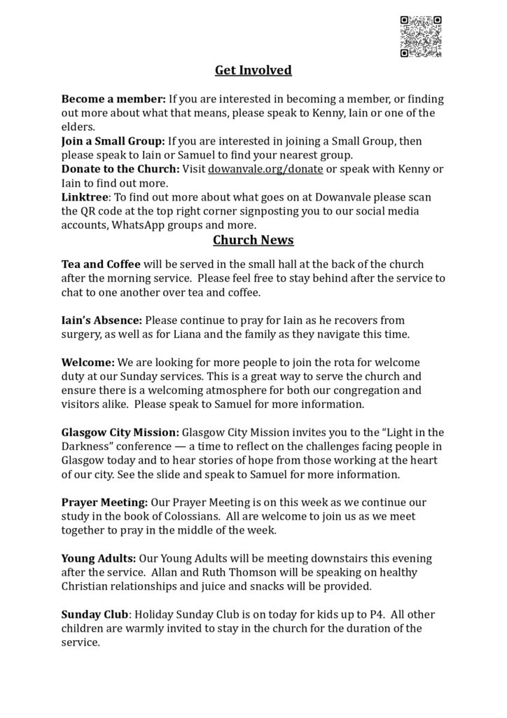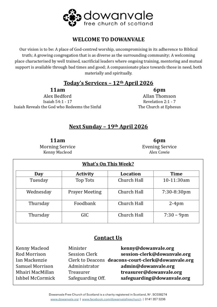 Dowanvale Free Church of Scotland is a charity registered in Scotland, No. SC038274.